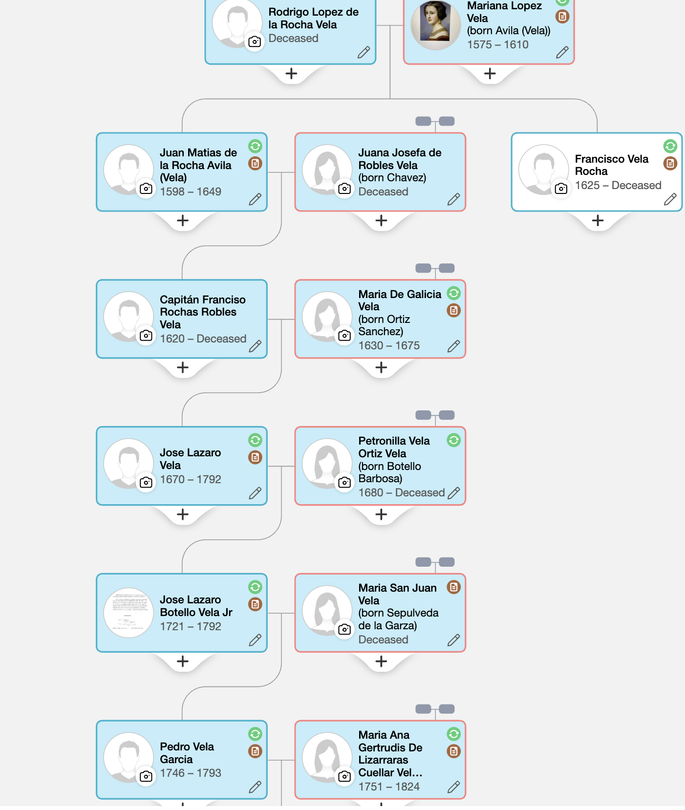 Here is the connections with our family. Capitan Francisco Vela Rocha Robles born in 1625—>Francisco Vela #448, 6 generations back—>Jose Rafael Vela—>Pedro Martin Vela—>Jose Leandro Vela—>Jose Cesario Vela(or Jose Maria)—>Dario Vela—>Natalia VELA Alvarado—>Tomasita Alvarado Garcia (born Tomasita Vela Alvarado)—>Becky Garcia Guittar (born Rebecca Alvarado Garcia).
