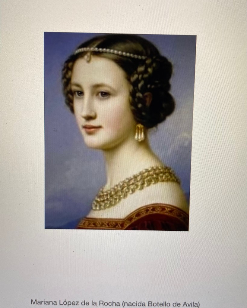Franciso Vela’s great grandmother was Mariana Lopez de Rocha Vela, born Botello de Avila from Spain. This is her portrait: