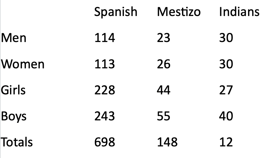 In 1779, a racial census of Mier showed: (page 304, With all Arms)